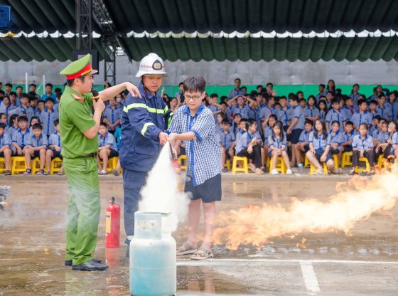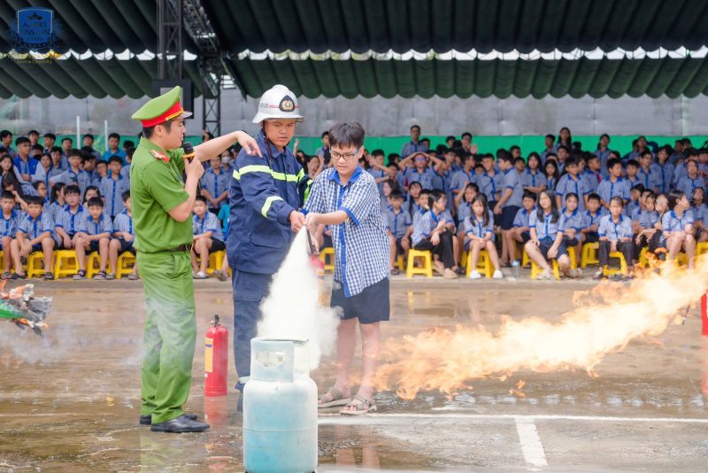 Tại chương trình, các thầy cô và học sinh được cán bộ Phòng Cảnh sát PCCC&CNCH phổ biến Luật Phòng cháy, chữa cháy và cứu nạn, cứu hộ, hướng dẫn nhận biết nguyên nhân gây hỏa hoạn, cùng các kỹ năng thoát hiểm an toàn trong tình huống khẩn cấp.