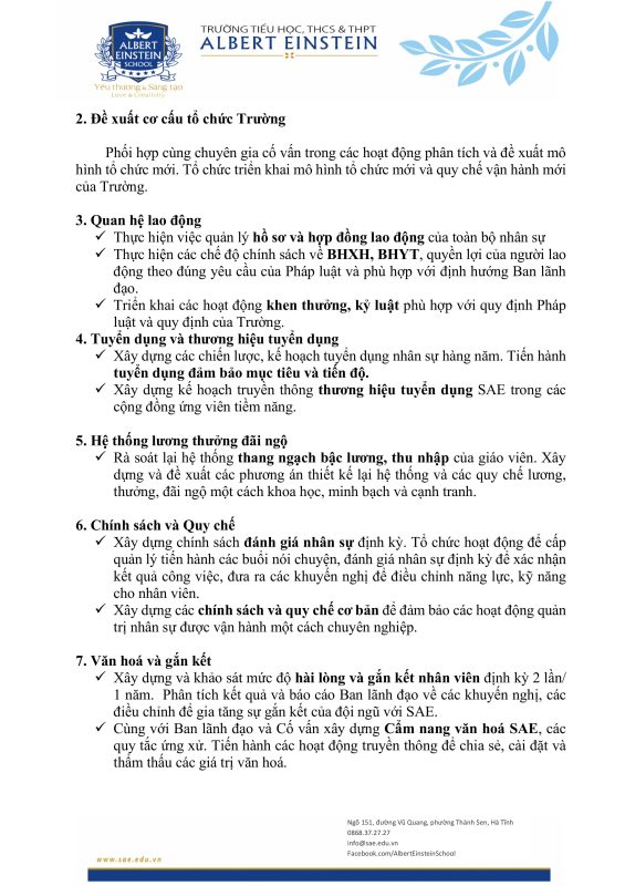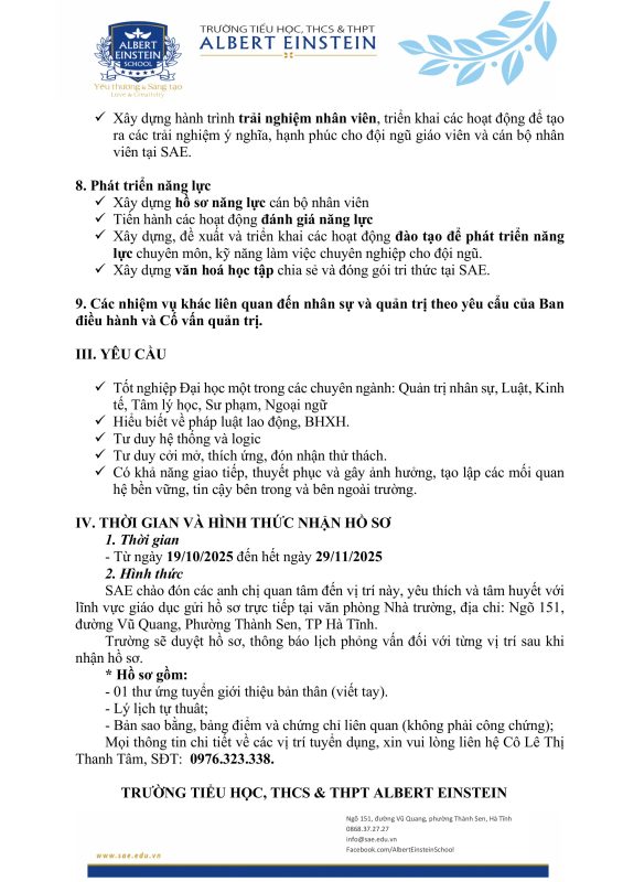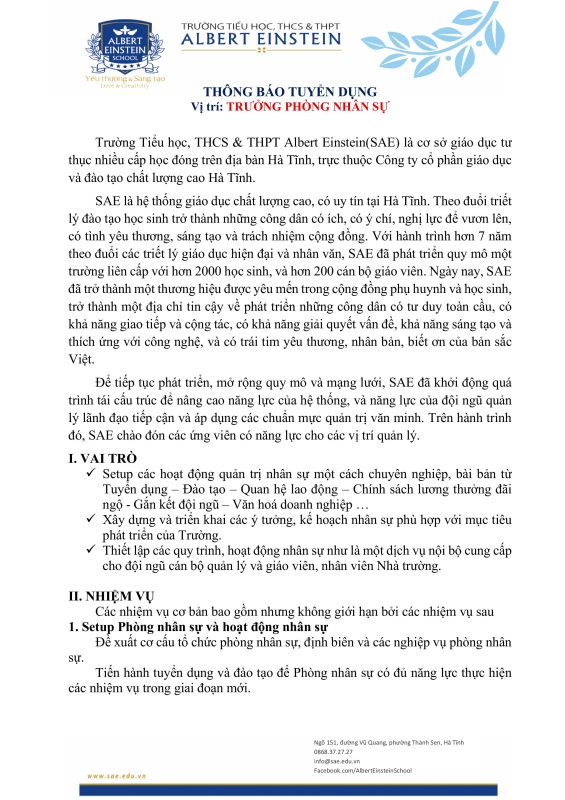 THÔNG BÁO TUYỂN DỤNG Vị trí: TRƯỞNG PHÒNG NHÂN SỰ