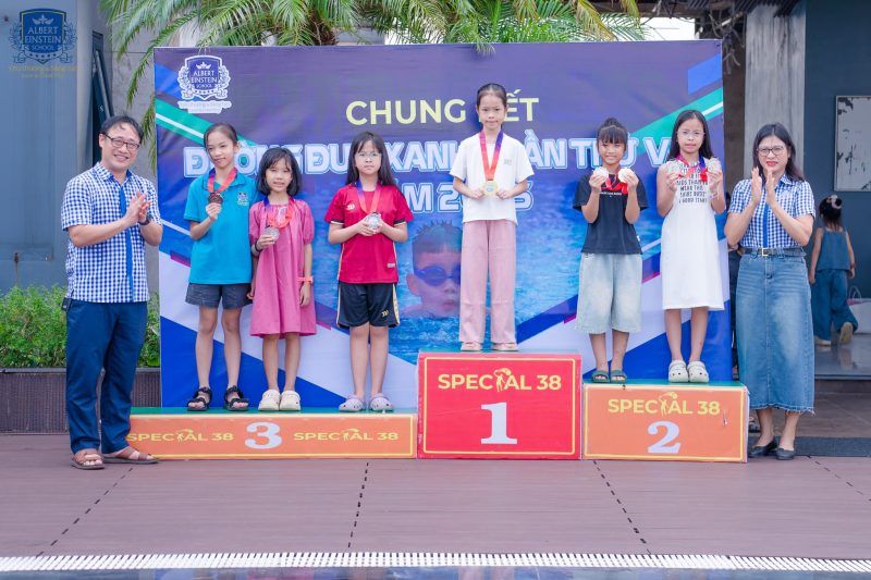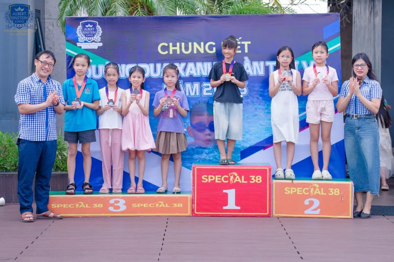 Các em chính là niềm tự hào của Trường Albert Einstein – những “chiến binh xanh” mạnh mẽ, tự tin và tỏa sáng trong từng đường bơi!